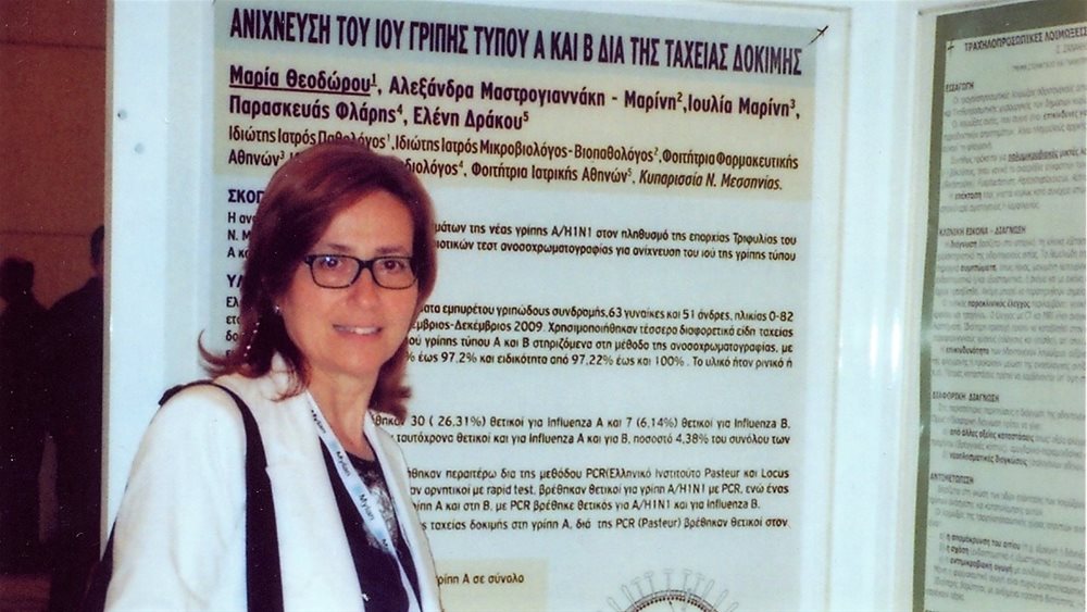 Από το 1985, ως Ιατρός Μικροβιολόγος – Βιοπαθολόγος προσφέρει τις υπηρεσίες της στο νομό Μεσσηνίας και δη στην επαρχία Τριφυλίας. Έχει ενεργό συμμετοχή σε Συνέδρια του κλάδου της και Σεμινάρια και συνεργάζεται με την έδρα Μικροβιολογίας του Πανεπιστημίου Αθηνών -πρόγραμμα Whonet- για την αντοχή των μικροβίων της κοινότητας στα αντιβιοτικά. Παράλληλα, παρακολουθεί τα μαθήματα που διοργανώνει η Μικροβιολογική Εταιρεία. Συμμετέχει στο πρόγραμμα ΑΤΛΑΣ, το οποίο είναι το Σύστημα Κεντρικής Υποστήριξης της Πρακτικής Άσκησης Φοιτητών όλων των ΑΕΙ της Χώρας.