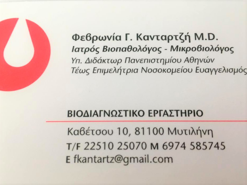 Από το 2009 διατηρώ ιδιωτικό Βιοδιαγνωστικό – Μικροβιολογικό Εργαστήριο στη Μυτιλήνη.