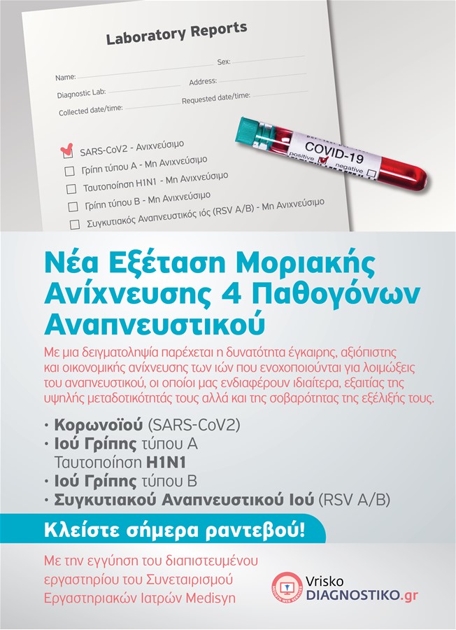 Νέα εξέταση Μοριακής Ανίχνευσης 4 Παθογόνων Αναπνευστικού